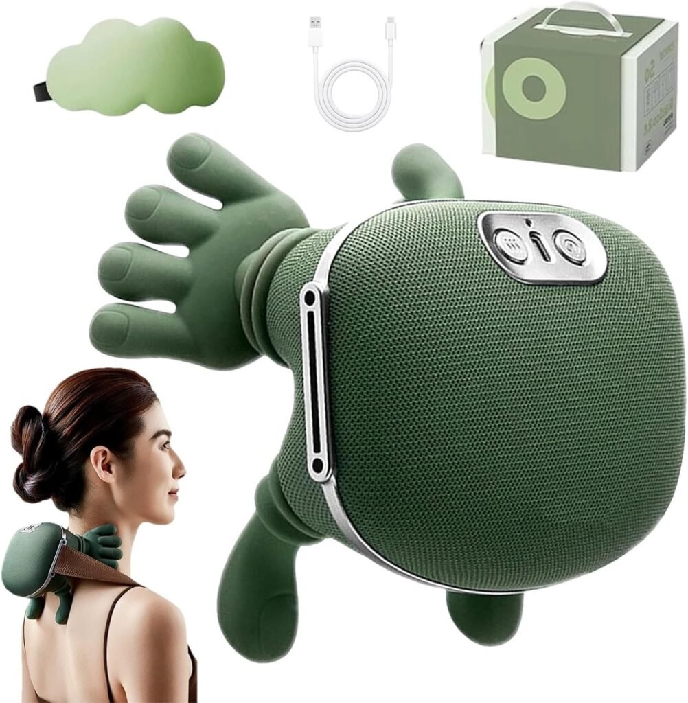 Hand Shoulder and Neck Massager, Portable Bionic Neck Massager with Heat Kneading, Electric Shiatsu Neck and Back Massager, 3-Speed Adjustment, for Pain Relief Deep Tissue (Green)
