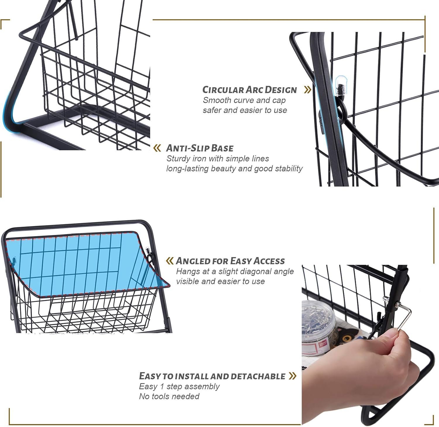- ?NOT Swing & Easy Access? – Upgrade produce basket stops swinging back and forth when loaded. The freestanding fruit storage rack hangs at a slight diagonal angle to make it visible and easier to just grab something and go.
