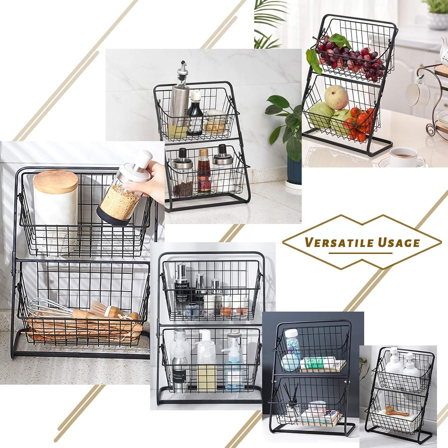 The 2 tier counter organizer is super versatile, it can be used as fruit basket, produce basket, potato and onion bins, snack display stand, coffee pod holder for anywhere need storage organizer in your home.