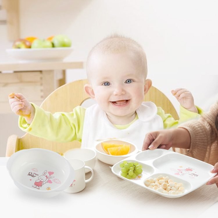 6Pcs/Set Cartoon Baby Feeding Bowl Plate Dishes Fork Spoon Cup Children Tableware Set Infant Separation Feeding Tray Dinnerware