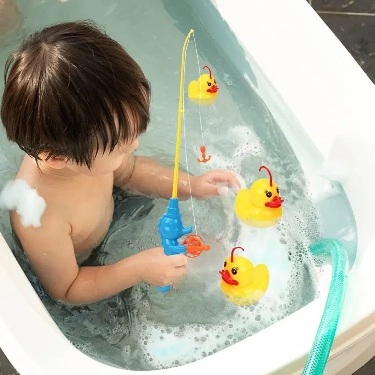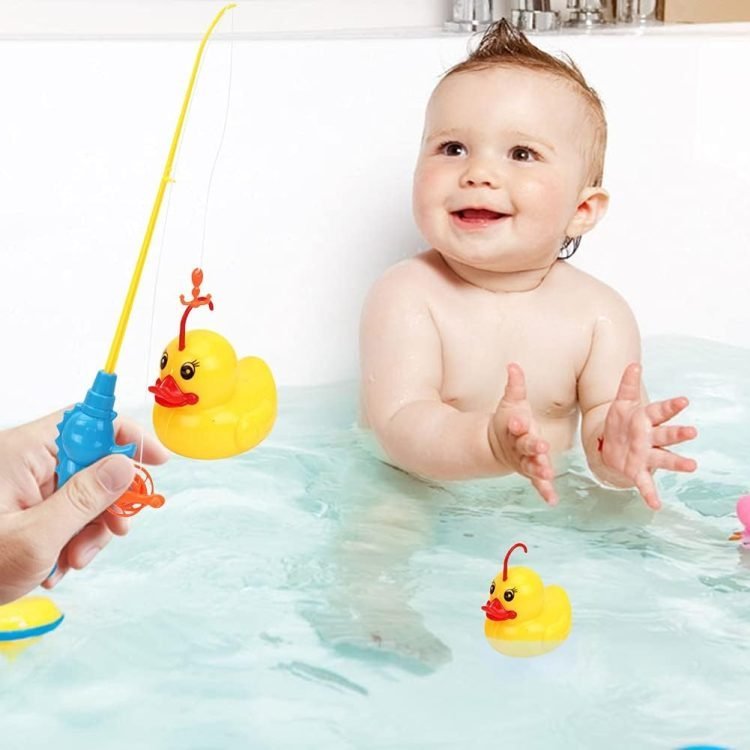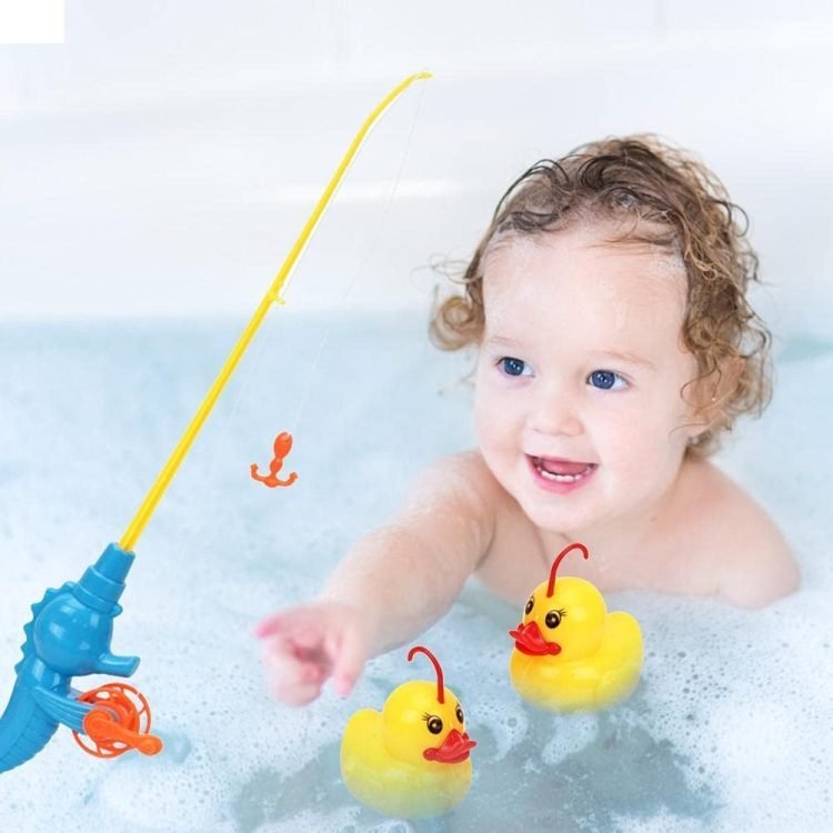 - Bath fish toys – kids try to catch duck, duck 1 duck, then 2 duck and 3 duck. This strengthens children’s confidence and patience. It can also help toddlers identify the blue, green and orange duck and catch them when asked. You can also use fishing nets to catch ducks.