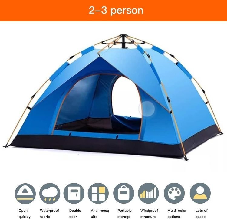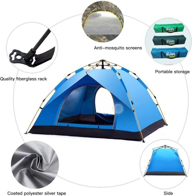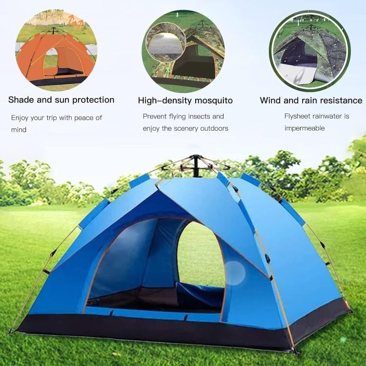 Camping Tent – 3-4 Person Family Tent Instant Easy Set up Tent with Carry Bag, Waterproof Windproof Pop Up Tent for Camping, Hiking, Mountaineering 210X200 CM