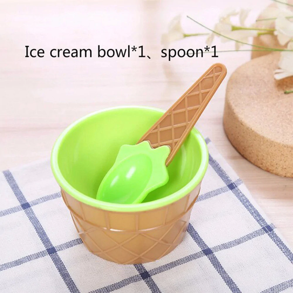 Candy-colored ice cream bowl with spoon creative ice cream bowl egg tart bowl The child’s bowl, double insulated and cool.