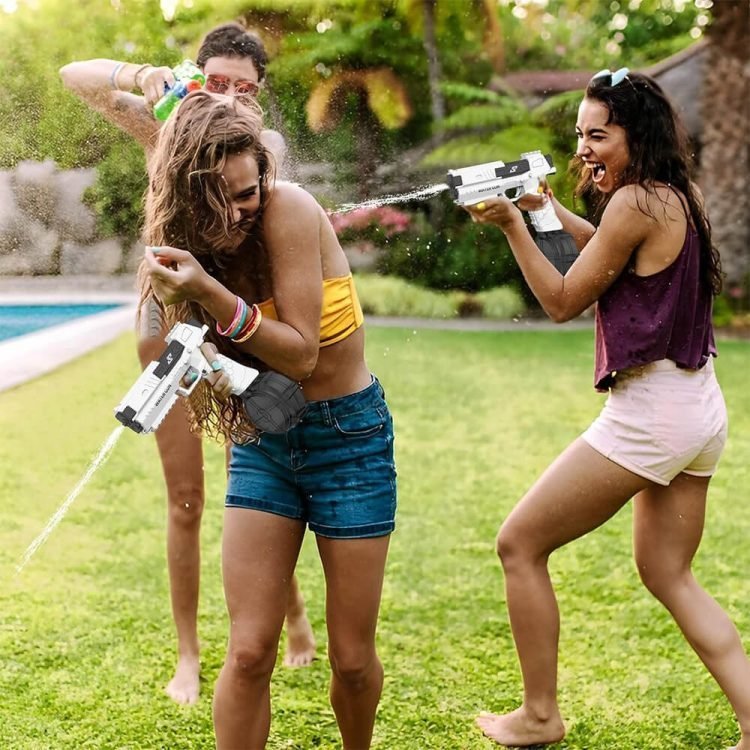 Made of safe and non-toxic ABS material. Comfortable to grip. Adopts an airtight water tank that prevents water leakage and is extremely durable. This automatic water gun can be played by both adults and children