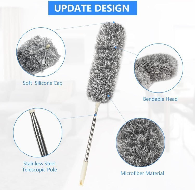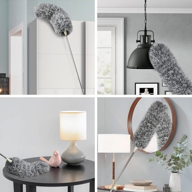 - ??Multifunctional & Extendable Dust Cleaner?:The microfiber head covers a large area, bendable head can be shaped at any desired angle for you to clean small cracks that are difficult to reach and hidden places.The Stainless Steel handle is retractable and can easily be extended to a maximum length of 100″. MISCOOK Super-long Duster extension rod can be extended to a high place for cleaning ceiling, lights, windows and other high places, no longer need to climb chairs or dangerous ladders.