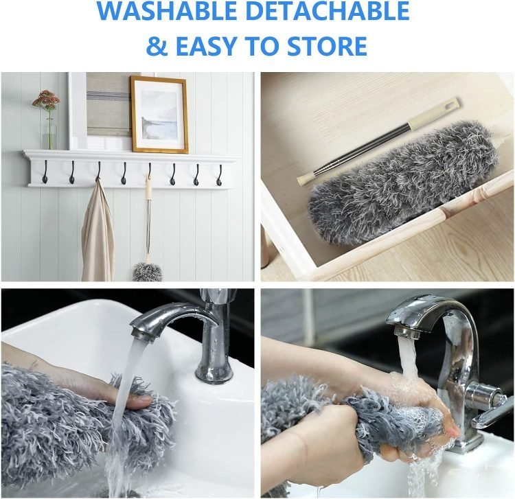 - ??Easy To Clean & Hang & Store?: MISCOOK Microfiber Duster’s Head is detachable, after cleaning the room, only need to twist the thread connecting rod in counterclockwise, remove the microfiber head, and wash it with warm water or low hot water! After natural fluffy drying, it can be reused for easy storage. With a hole of handle, you can hanging it on the wall or door, or put the head and the rod separately into the drawer. It won’t take up your space.