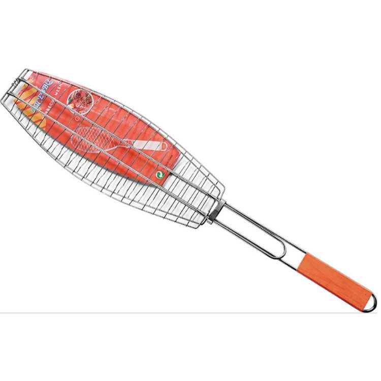 ?Grill meats or veggies with this BBQ Grill Basket. Chrome Plated Stainless Steel wire-body heats up fast and gives an excellent non-stick performance. Handle with Sliding Wooden Bar makes safe handling.