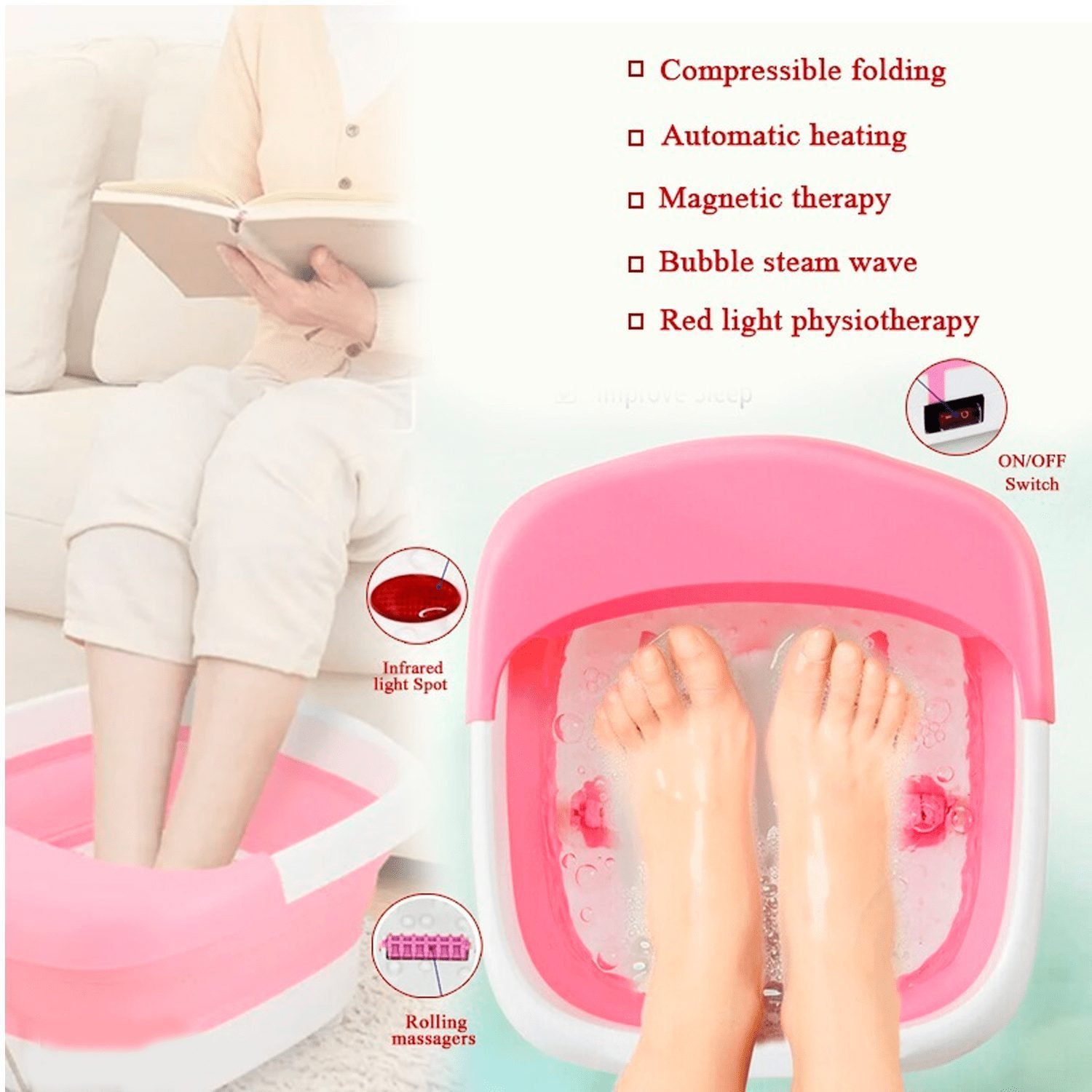 ???? Soothing Foot Spa ? Enjoy a relaxing foot bath with electric massage features that relieve stress and fatigue.