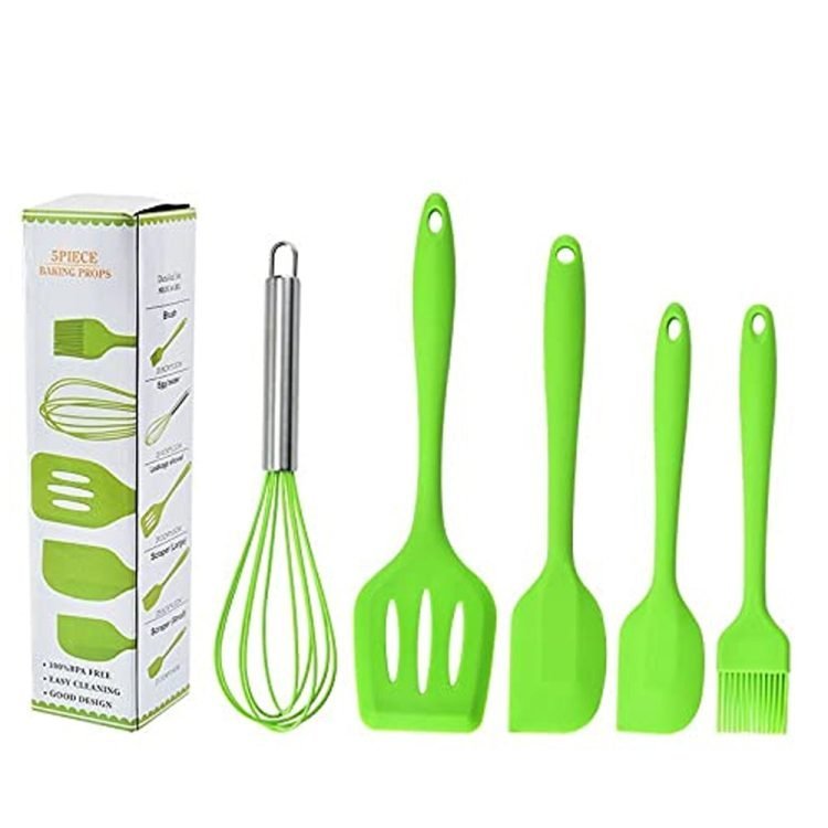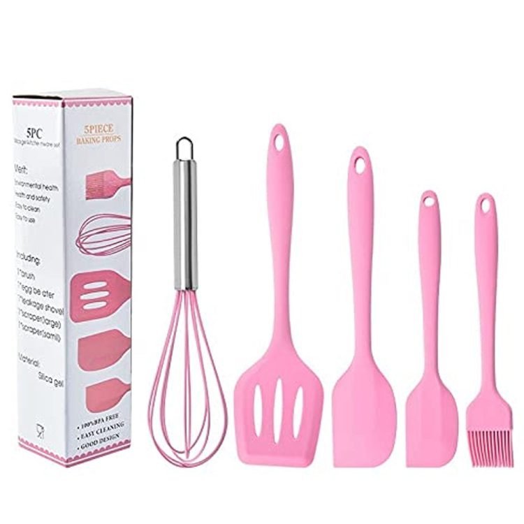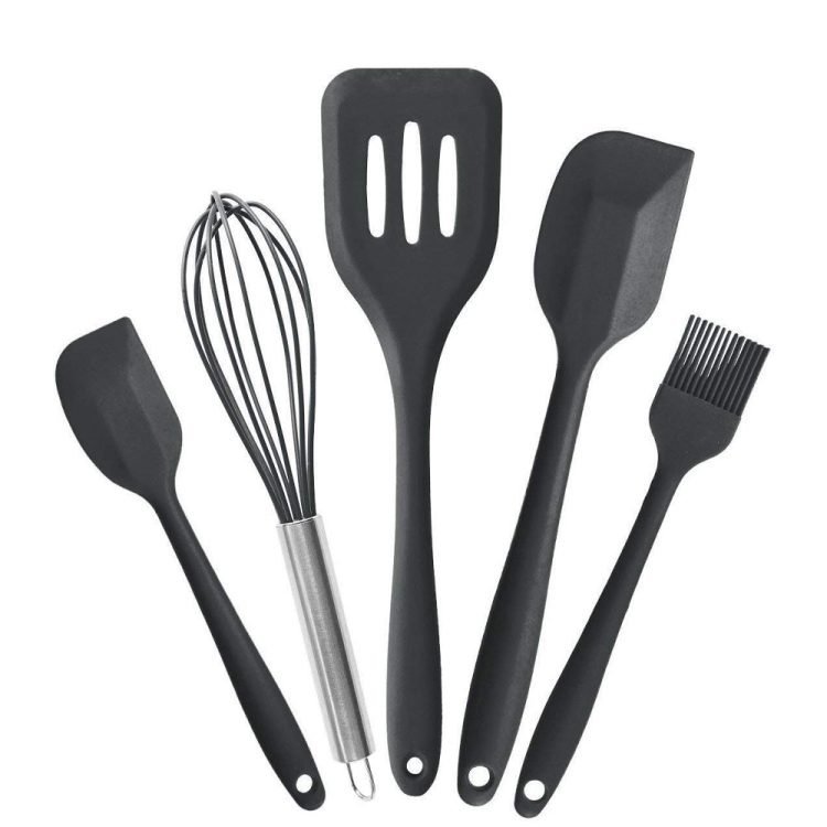International Premium Silicone Kitchen Utensils Set (5 pcs) in Hygienic Solid Coating Include Silicone Spatula Set, Turner, Brush, Whisk