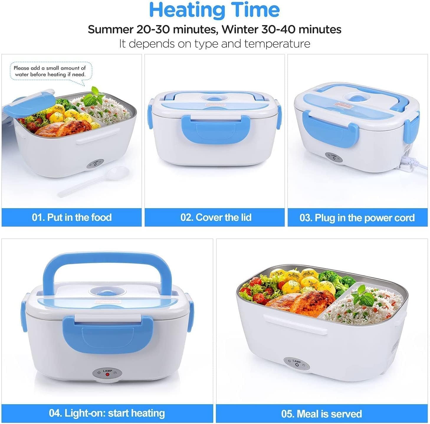 • Portable electric lunch box that warms up stored food Suitable for those want to take away lunch and breakfast Automatically powers off after food is warmed