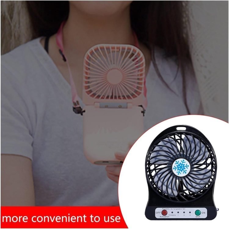 • Table Fan with Tilt Adjustable Head, it is trouble-free to put this small and the exquisite rechargeable fan.
