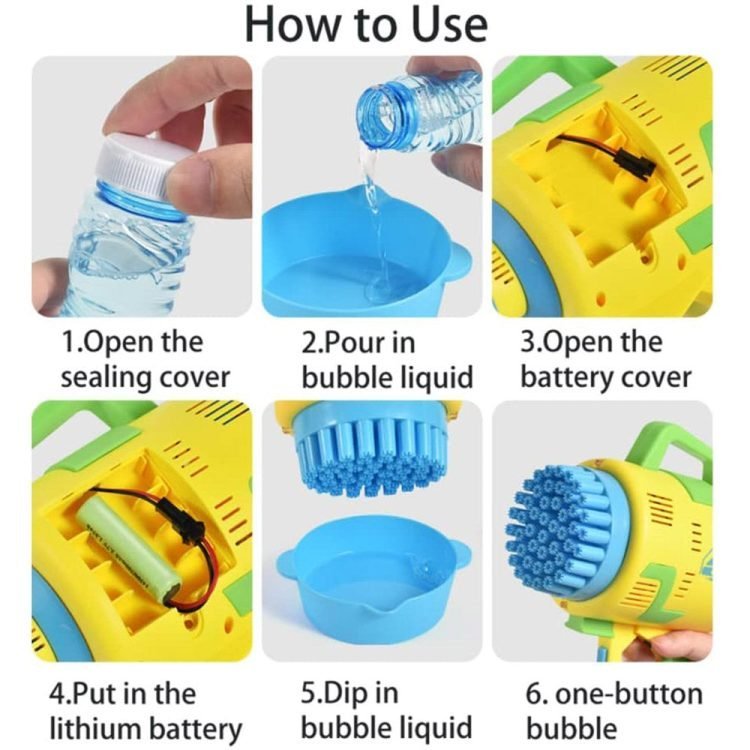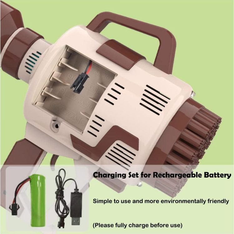 - Rocket Bubble Gun is equipped with rechargeable lithium battery and charging cable, which can be upgraded for long-lasting high battery life, which is easy to install and use. Pour bubble water on the plate, immerse the bubble guns in the bubble solution, and then press the switch to enjoy the bubble time.