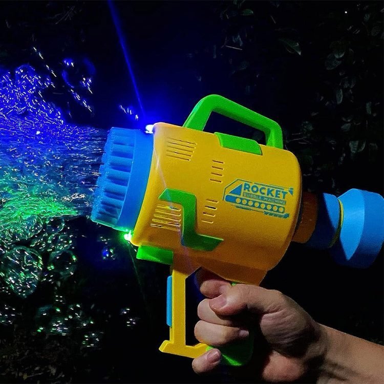- Rocket Bubble Gun has 49 bubble holes, which can blow out hundreds of bubbles per minute. Your kids can take on the go this bubble shooters, it’s a fun and interactive toy that will keep them entertained for hours.