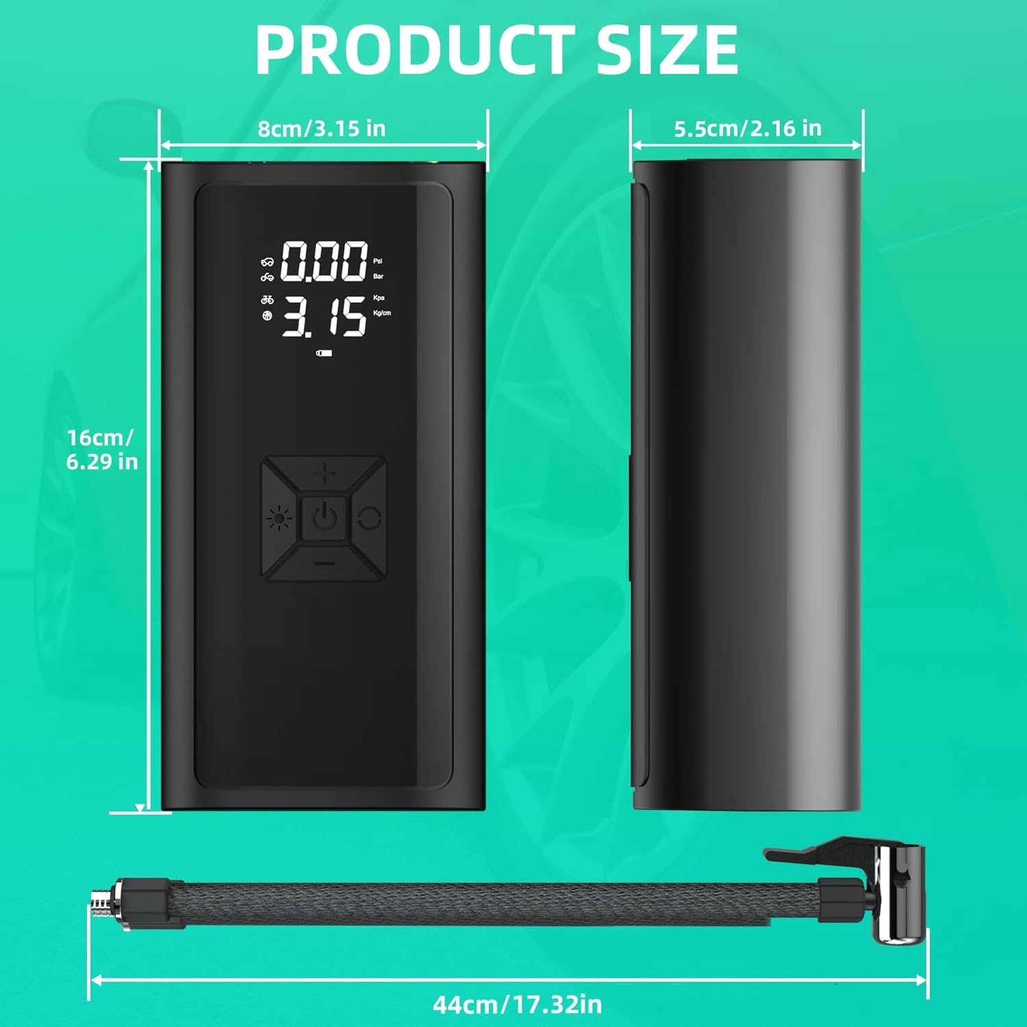 Air Compressor – Equipped with a rechargeable upgrade 5400mAh battery, the inflator works without the need to connect a charging cable. Works continuously for up to 1-2 hour. Ideal for inflating cars, motorbikes, bicycles, balls and other inflatable equipment.