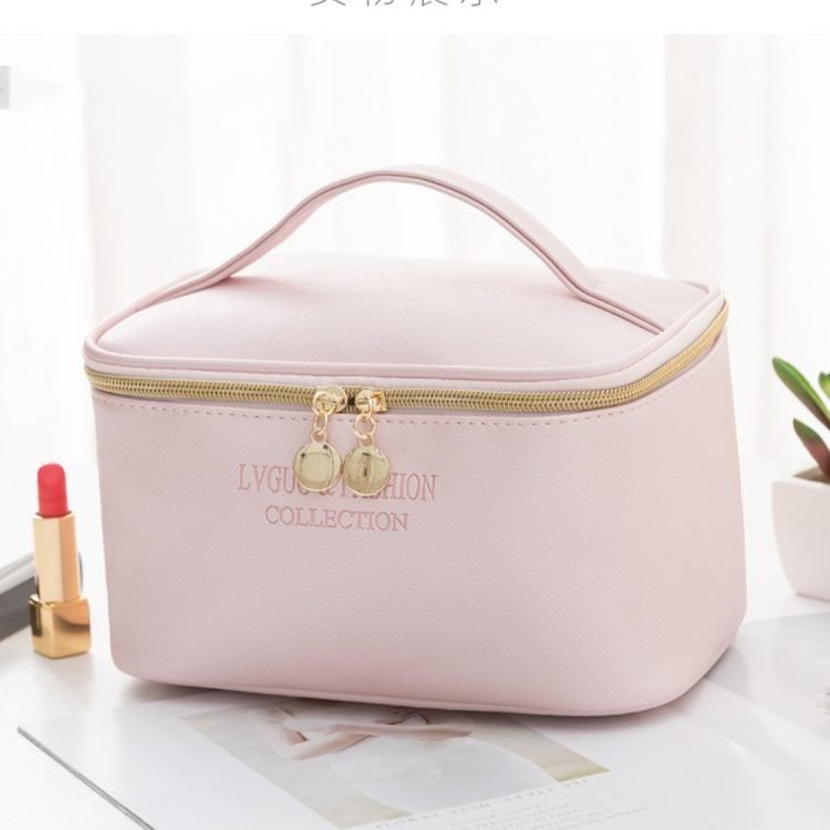 Portable Women Cosmetic Bag PU Leather Waterproof Zipper Make Up Bag Beauty Case / 22FK195