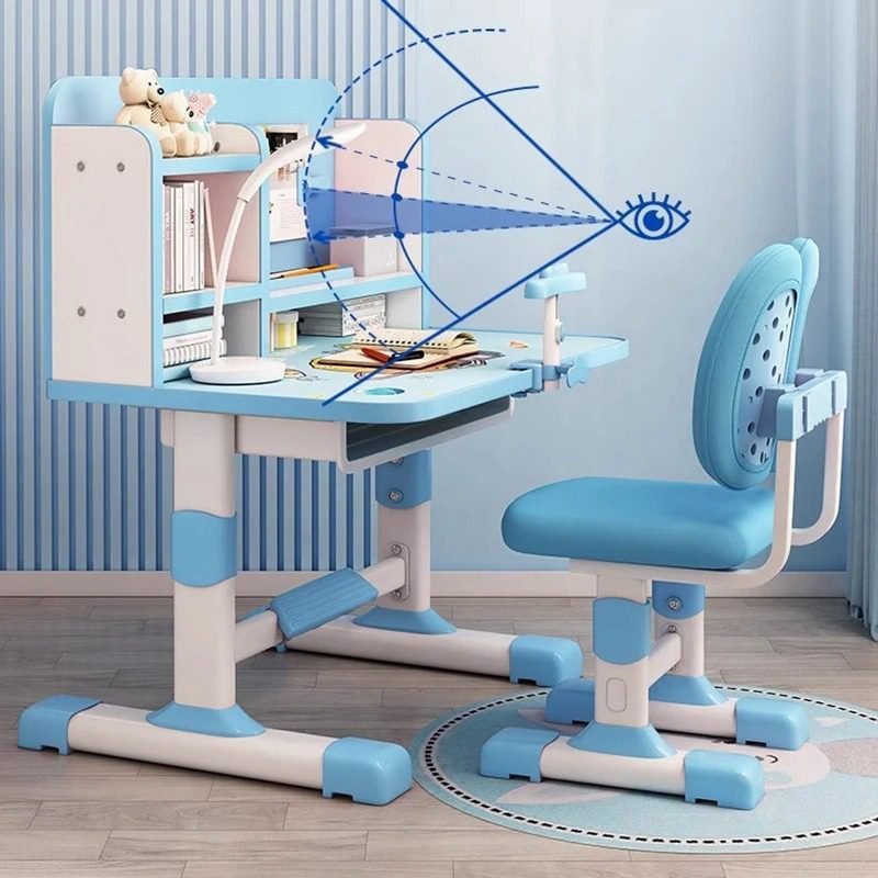 - ??Golden Distance Design & Upgraded Widened Desktop?Golden distance design can keep your child upright sitting posture, protect children’s vision. The upgraded 80cm writing area is widened to make it more spacious and comfortable compared with the normal learning desk chair set in the market.