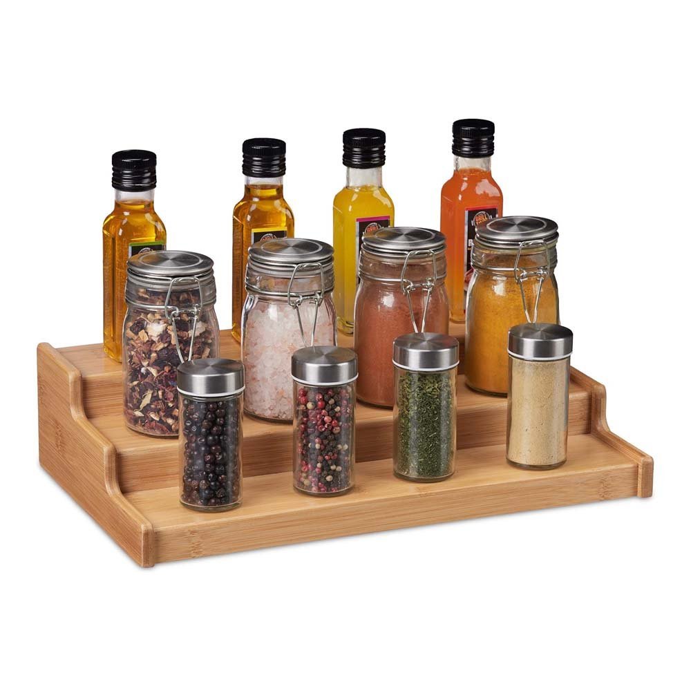 - Design: standing spice organiser made of naturally grained bamboo, warm look fits in any kitchen