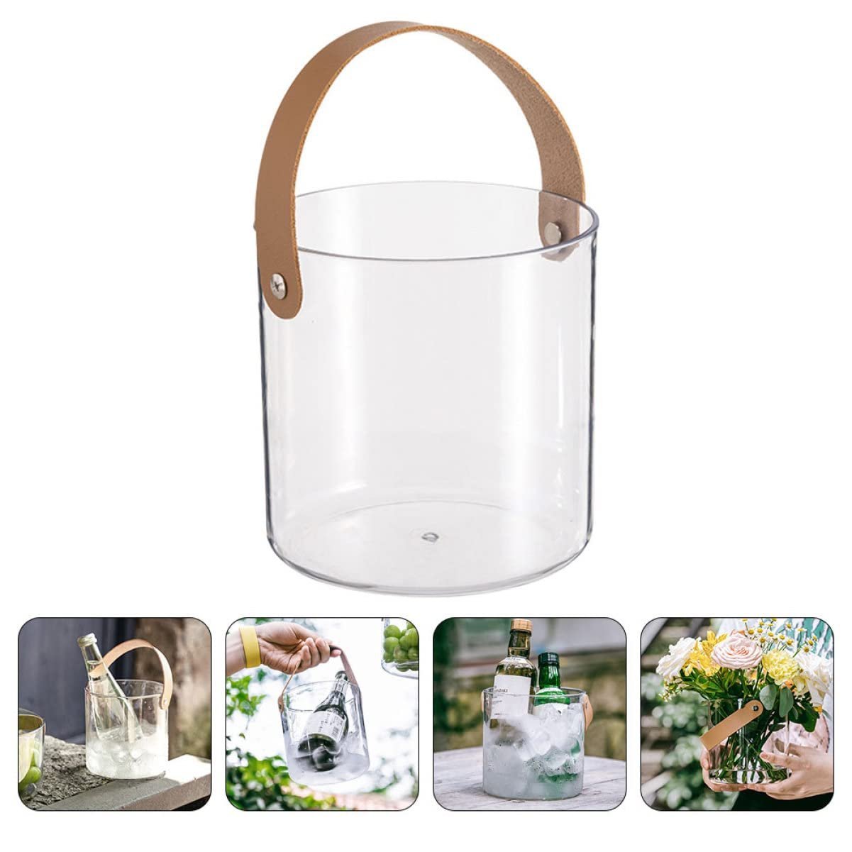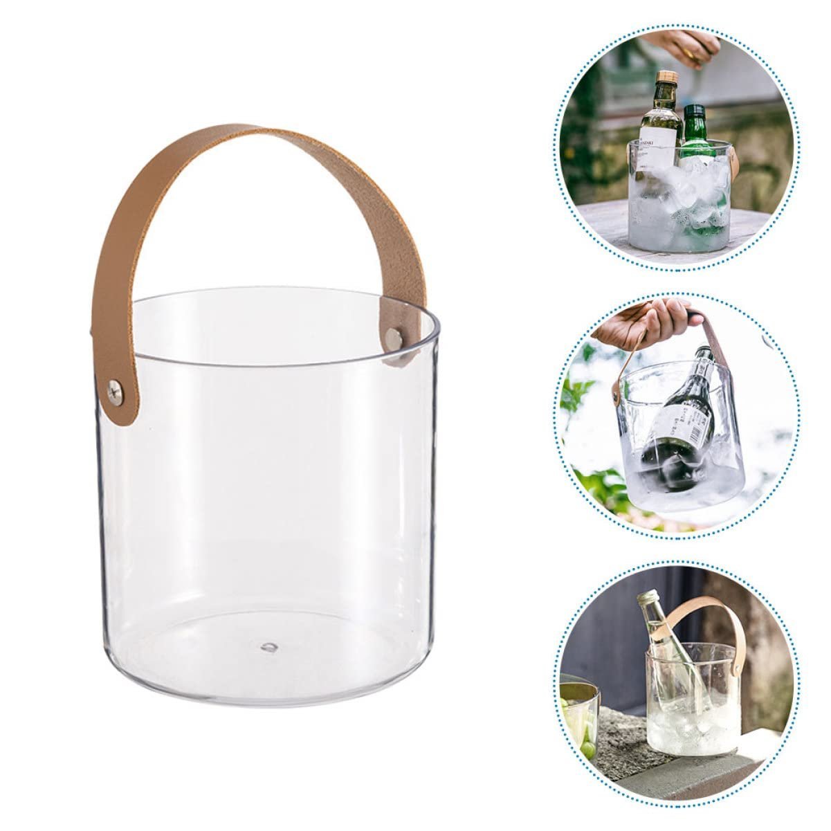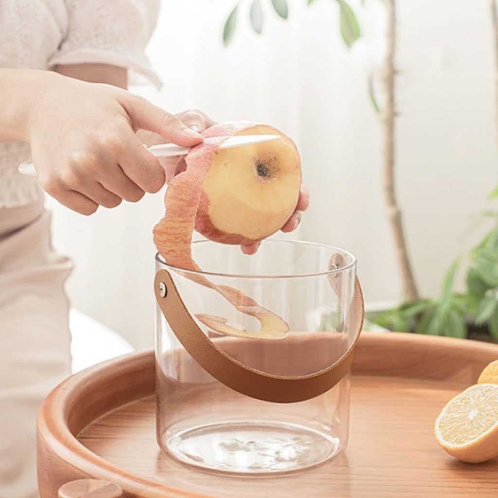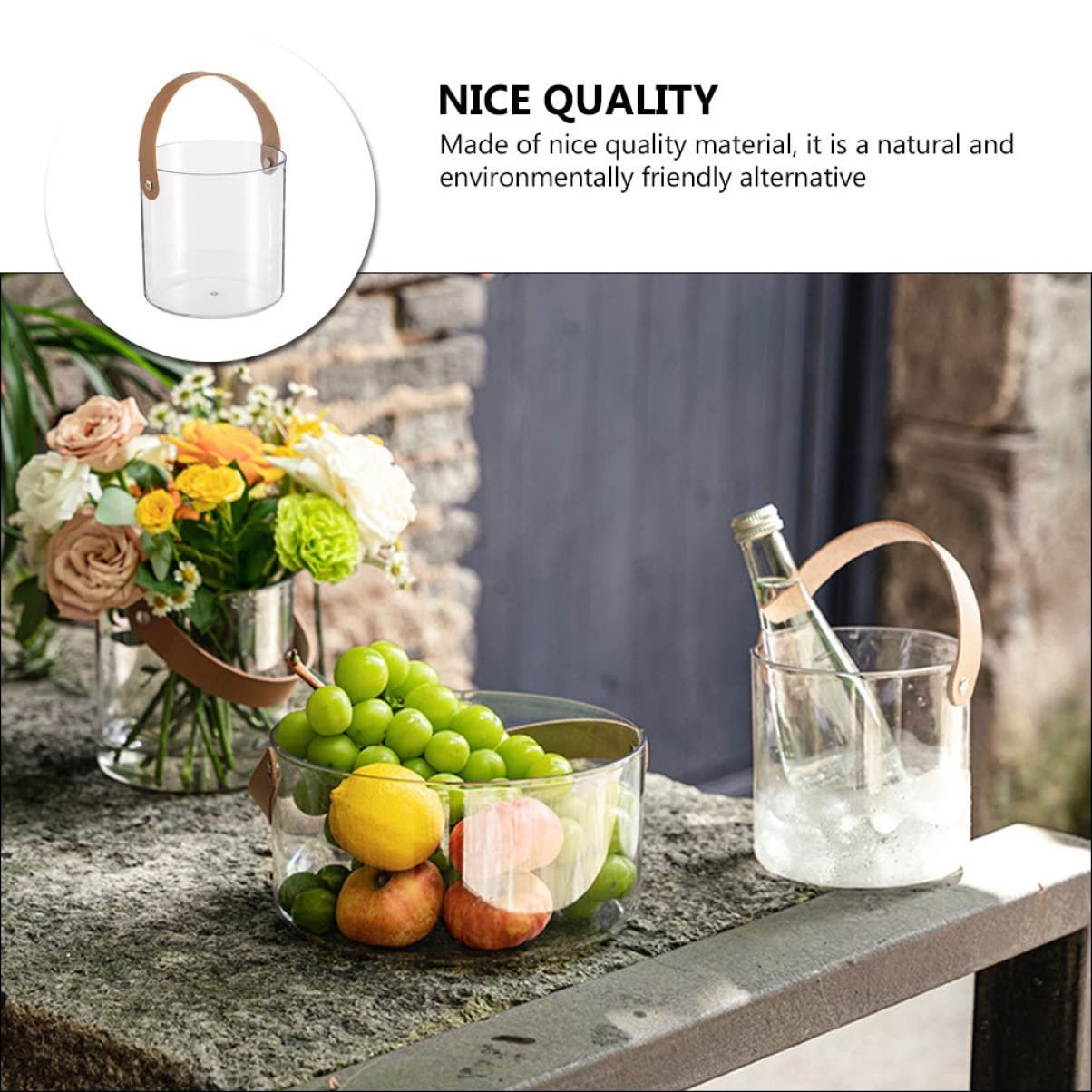 - Plastic trash can with leather strap, easy to lift and move, can also be hung.