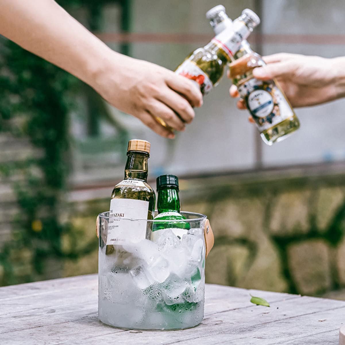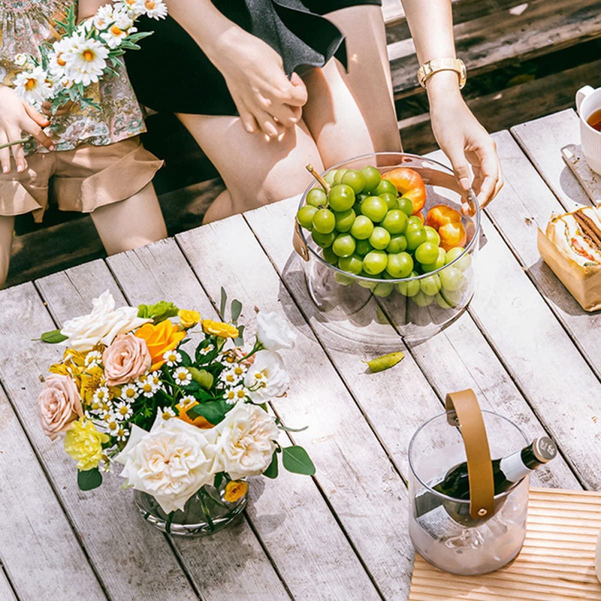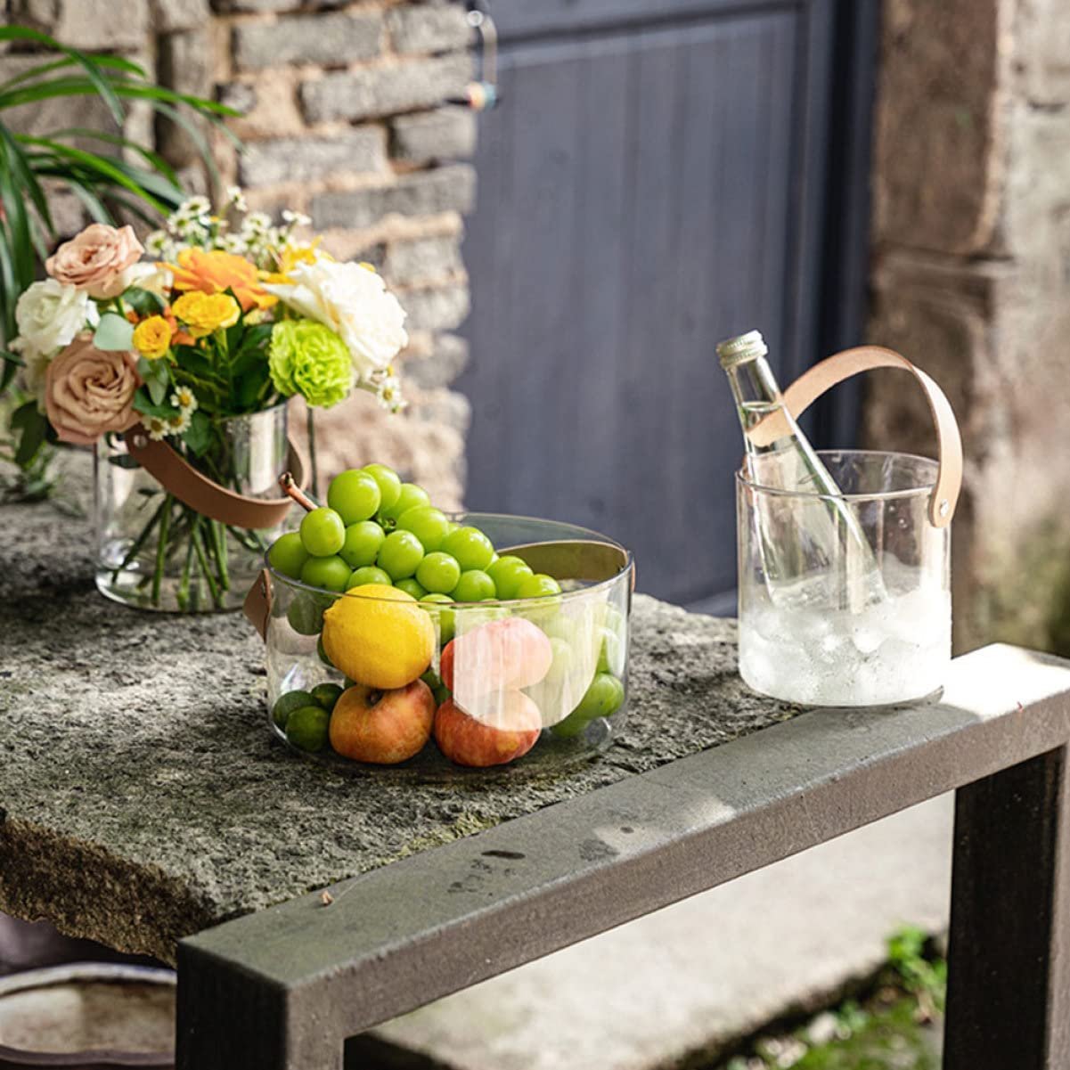 - Plastic trash can with leather strap, easy to lift and move, can also be hung.